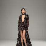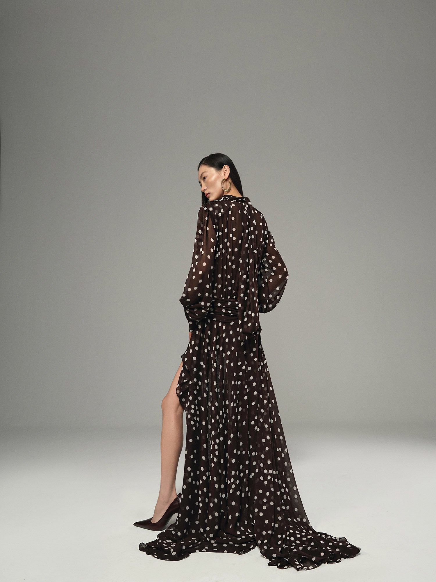 Retro Polka Chiffon Maxi Dress