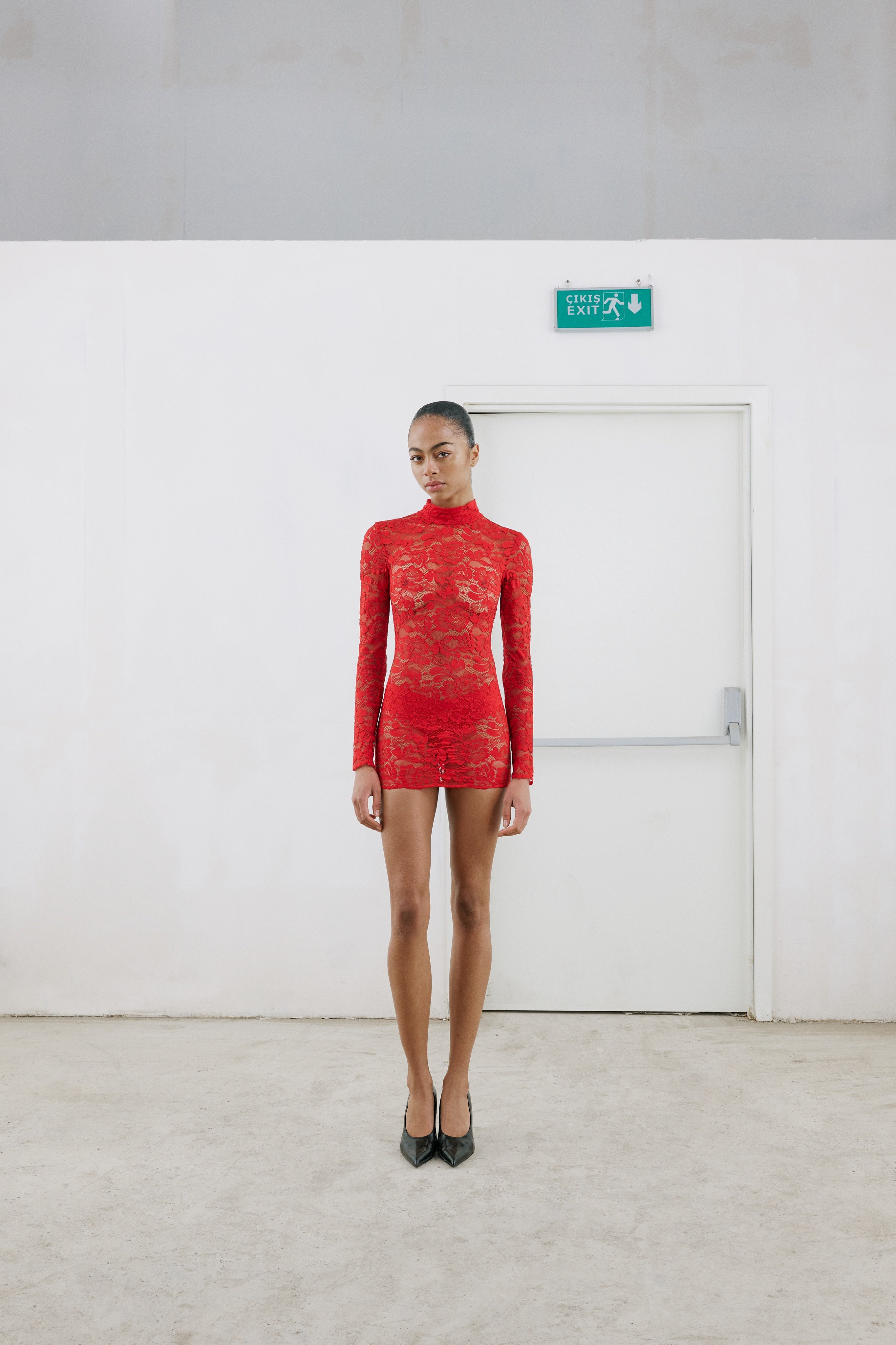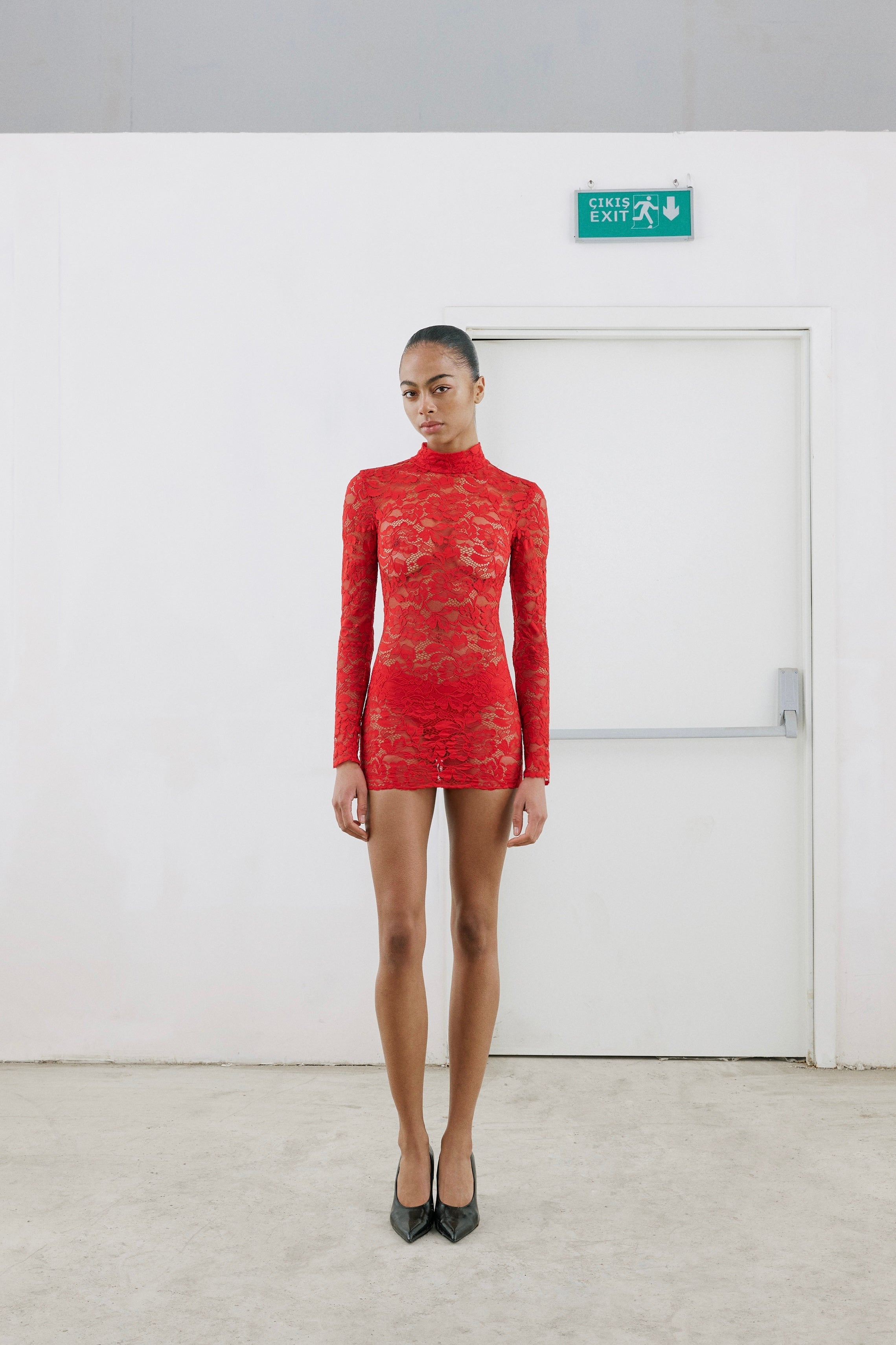 Balıkçı yaka, dantel mini elbise