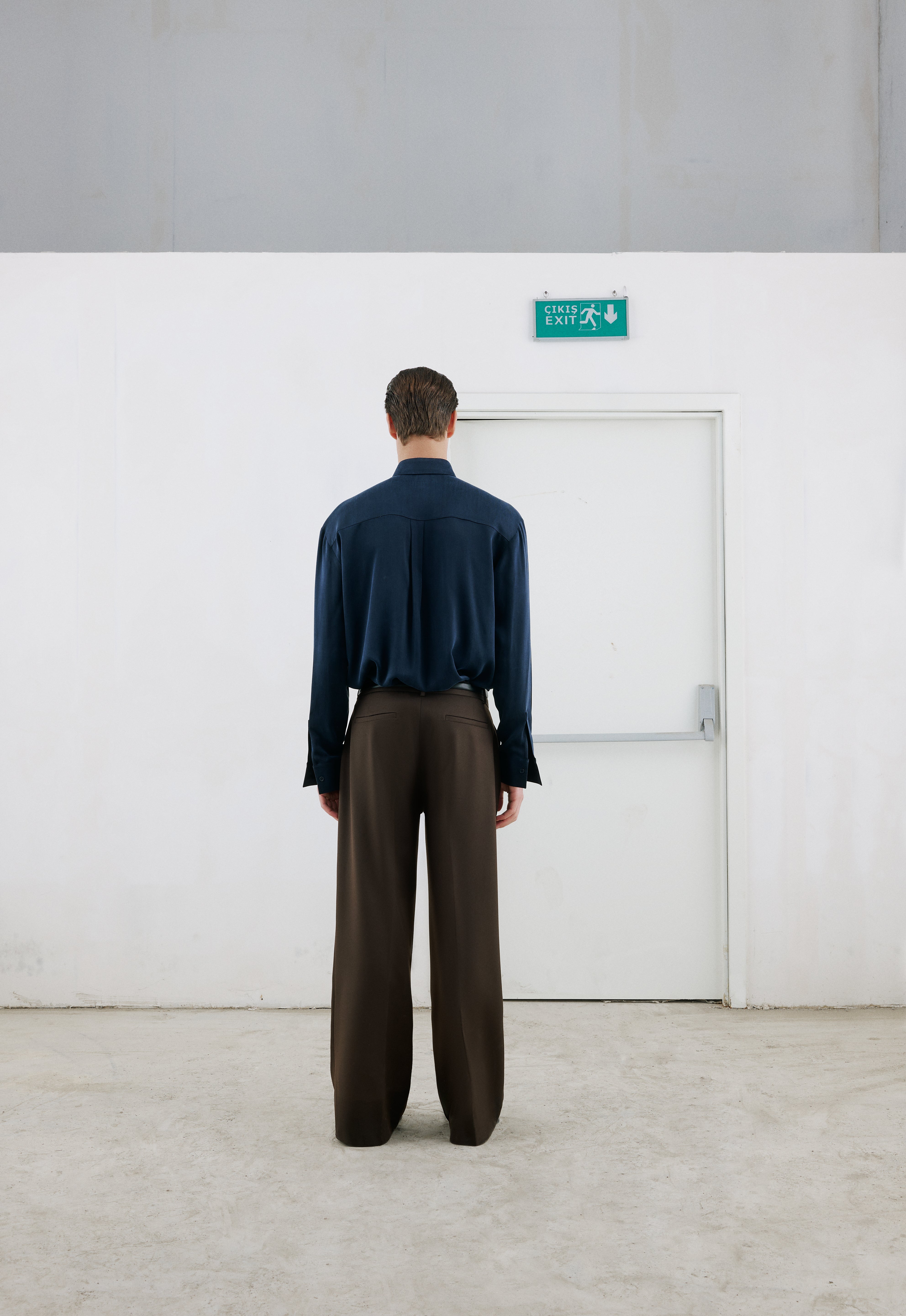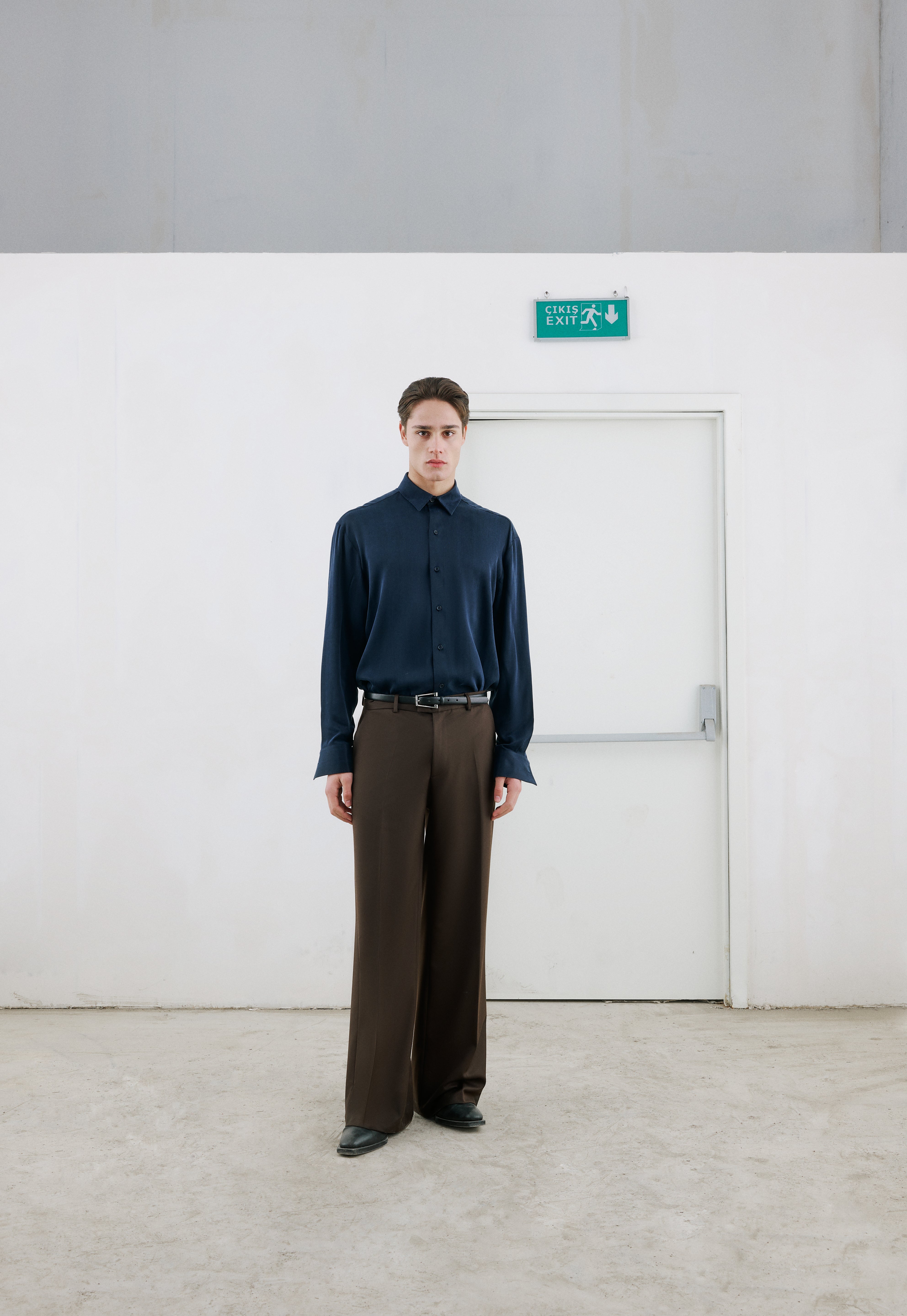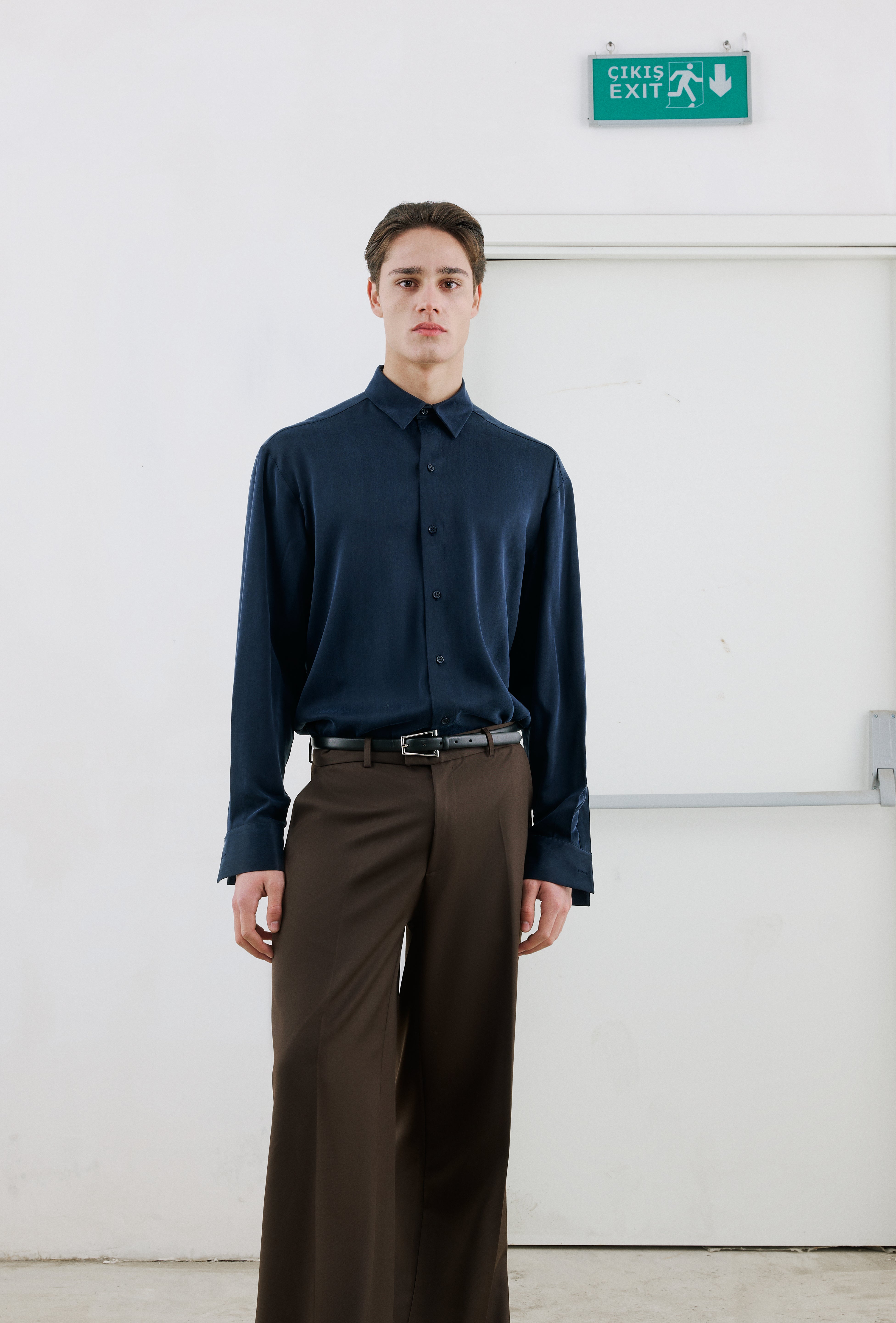 Dökümlü ipek cupro, oversize kesim gömlek.