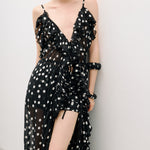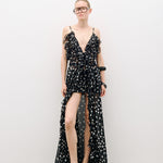 Volanlı ve önden bağlama detaylı üst, drapeli etek