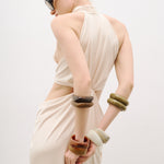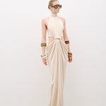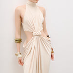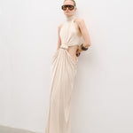 Bel dekolteli, önden bağlama detaylı maxi elbise