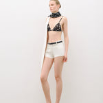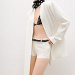 Kendinden çıkarabilir şal yakalı ceket, mini şort