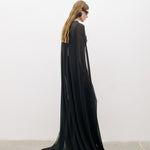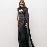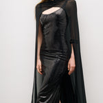 Pelerin detaylı, ince askılı maxi elbise