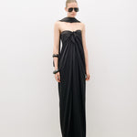 Önden düğüm detaylı, şallı maxi elbise