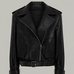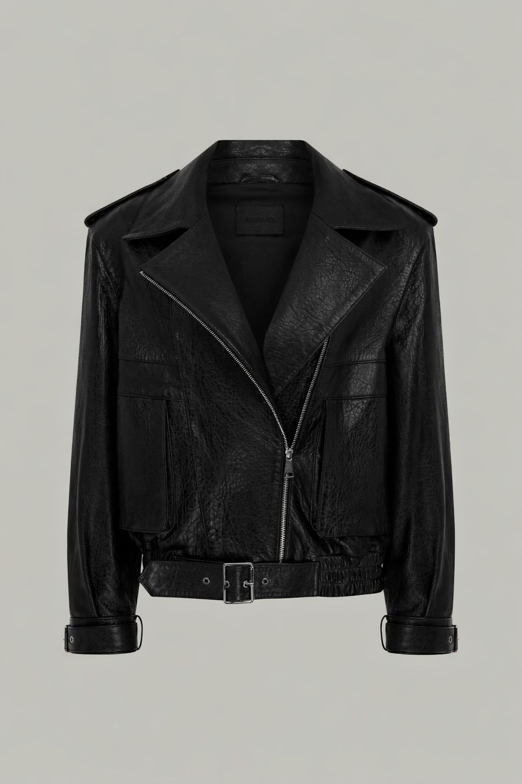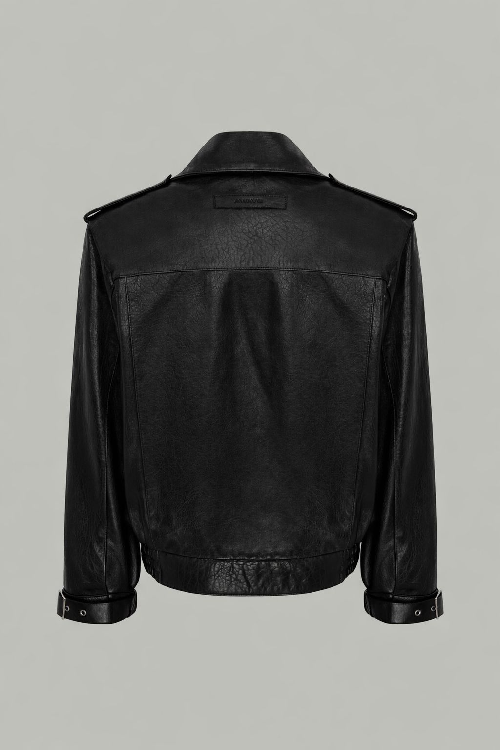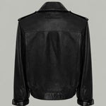Siyah, dokulu, vatkalı biker kesim deri ceket