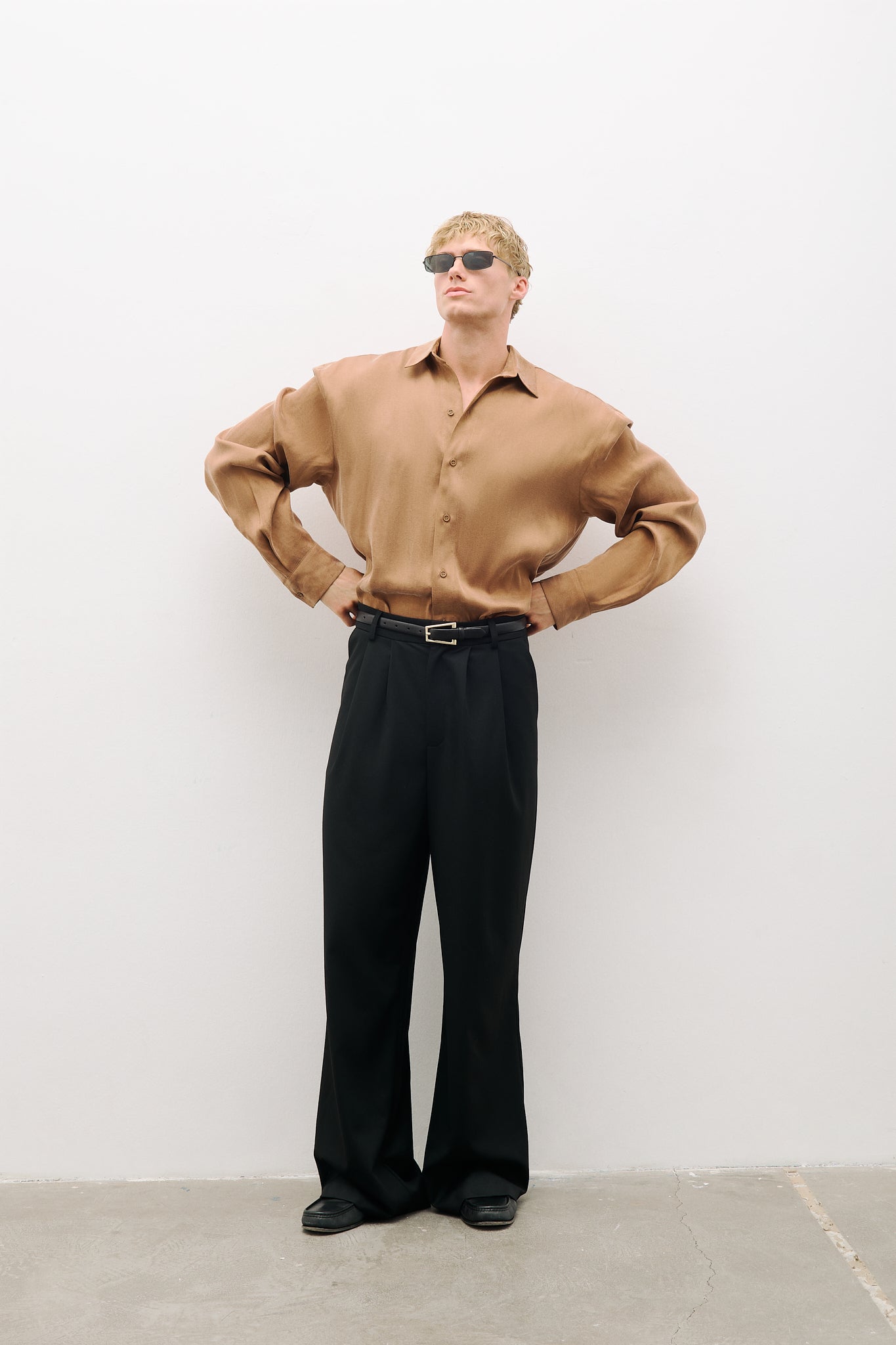 Oversize kesim, çift pileli pantolon