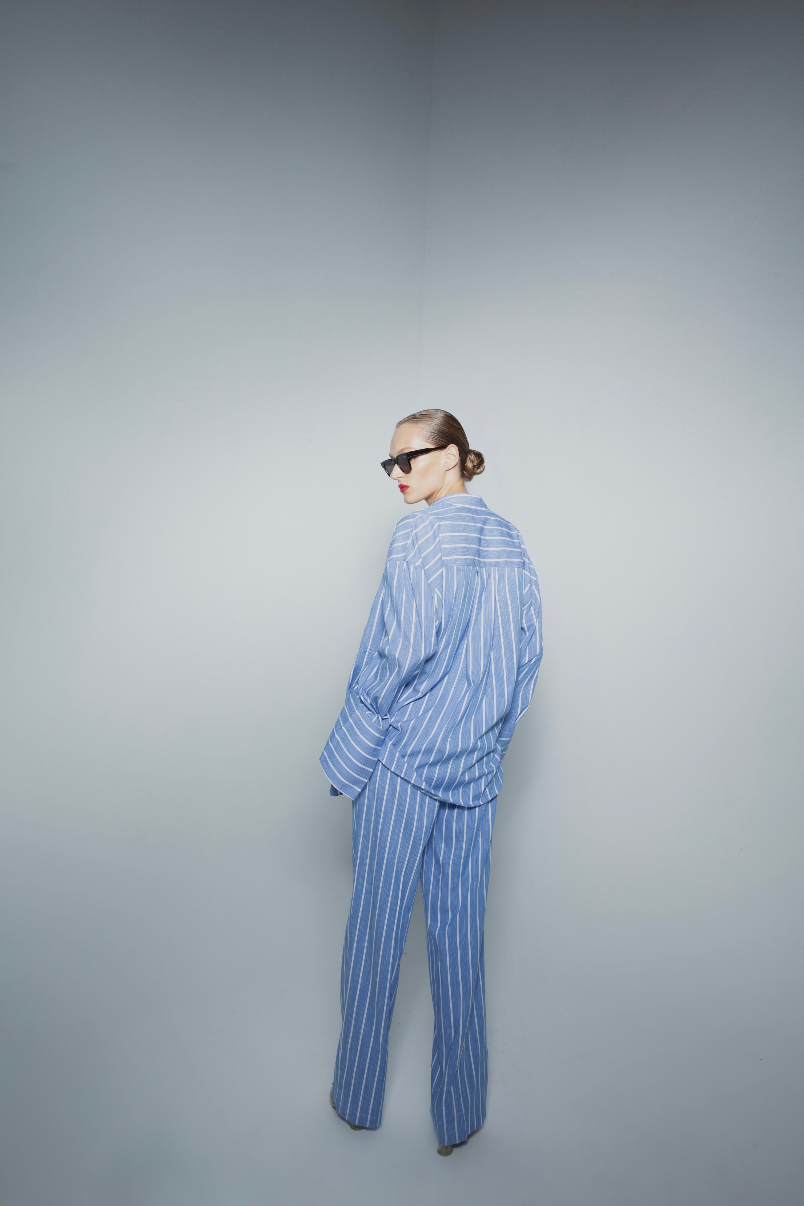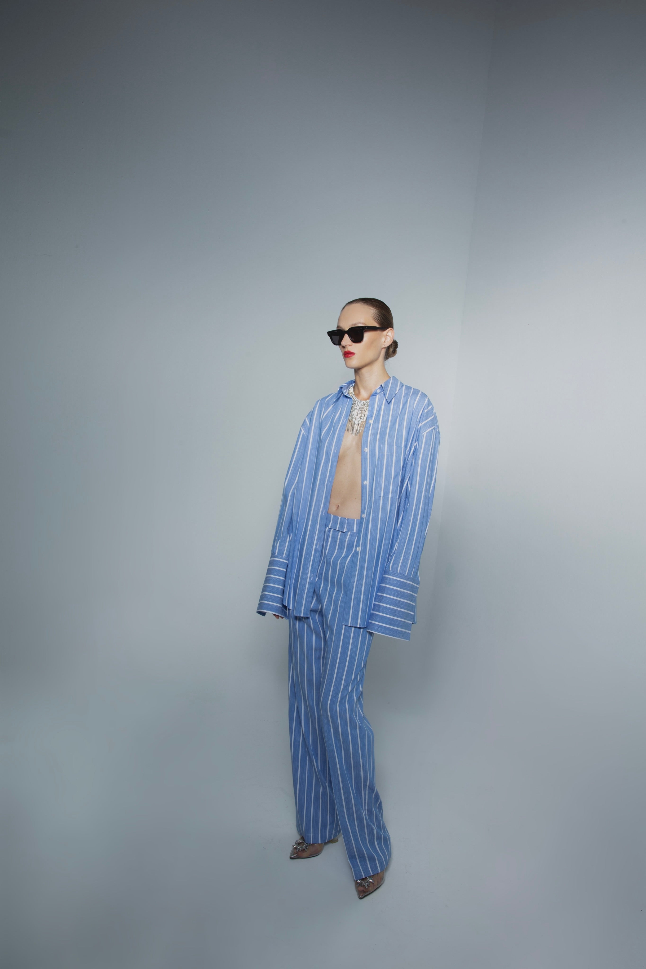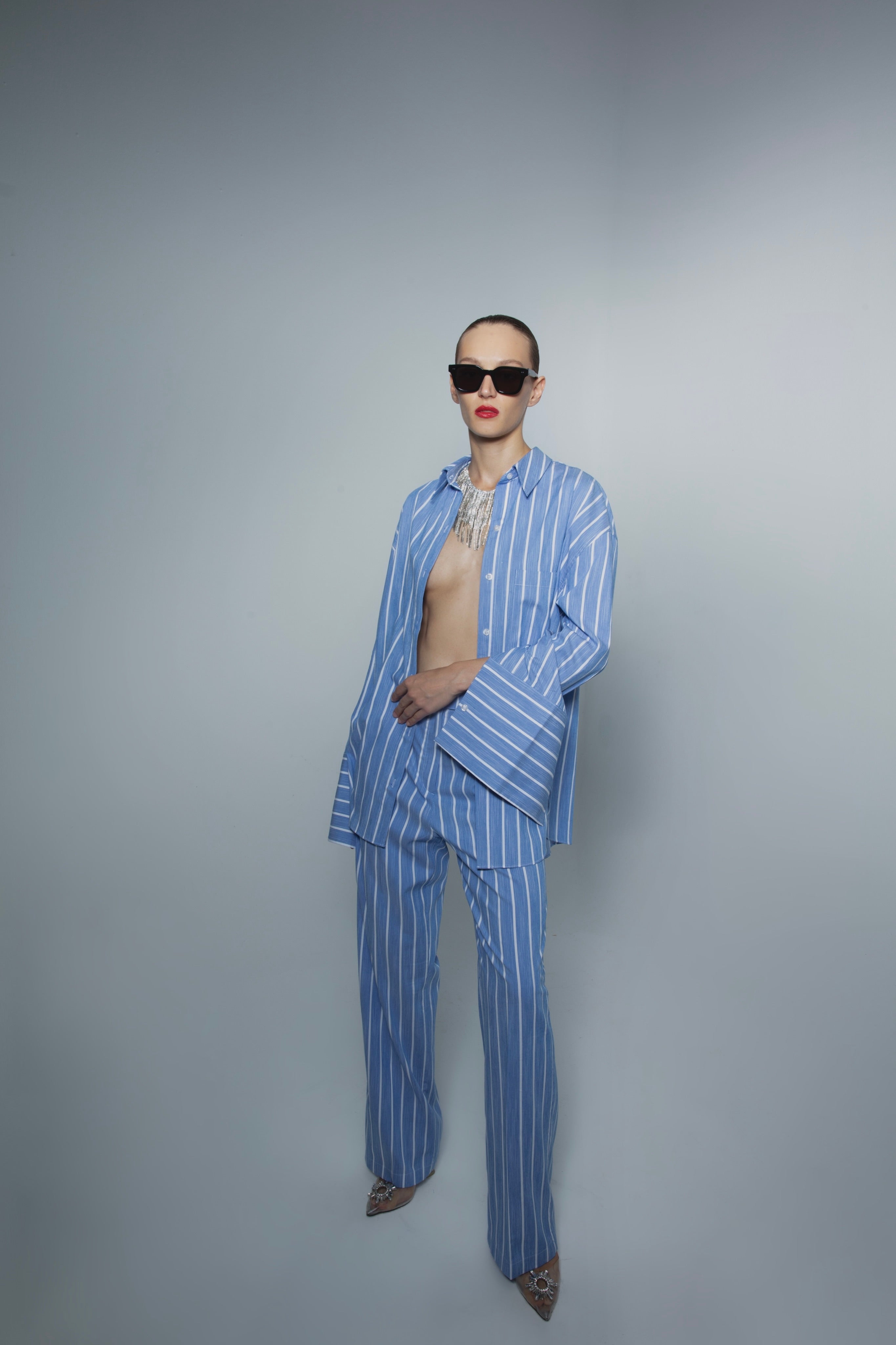 Kalın manşetli oversize kesim gömlek , straight kesim kemerli pantolon