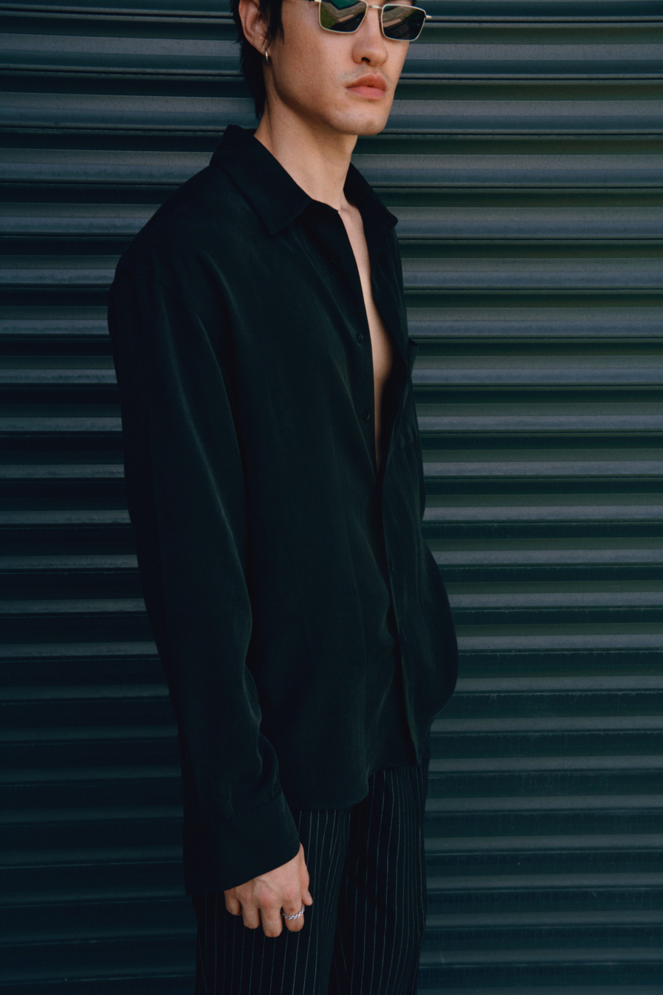 Tencel kumaş oversize kesim gömlek, çift pileli pantolon.