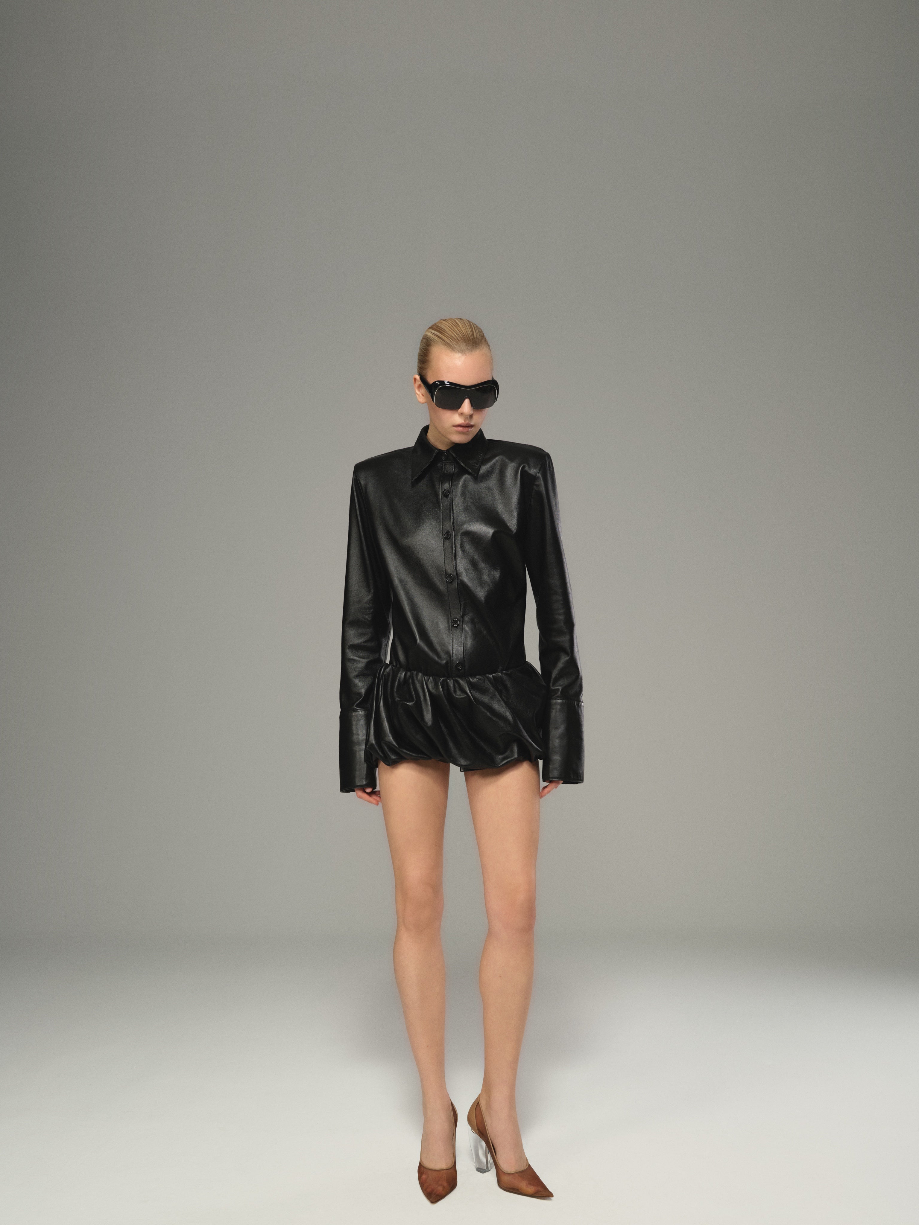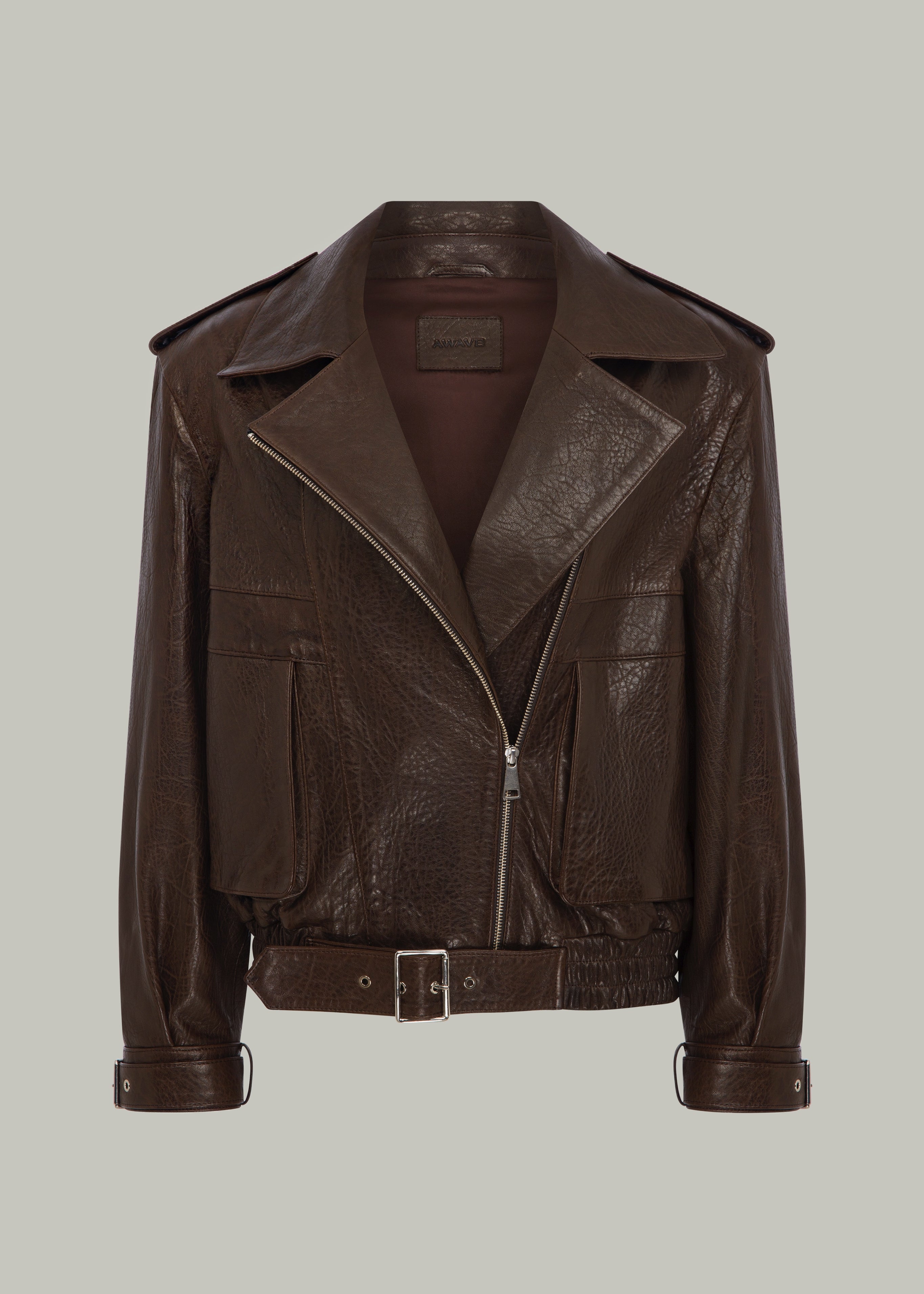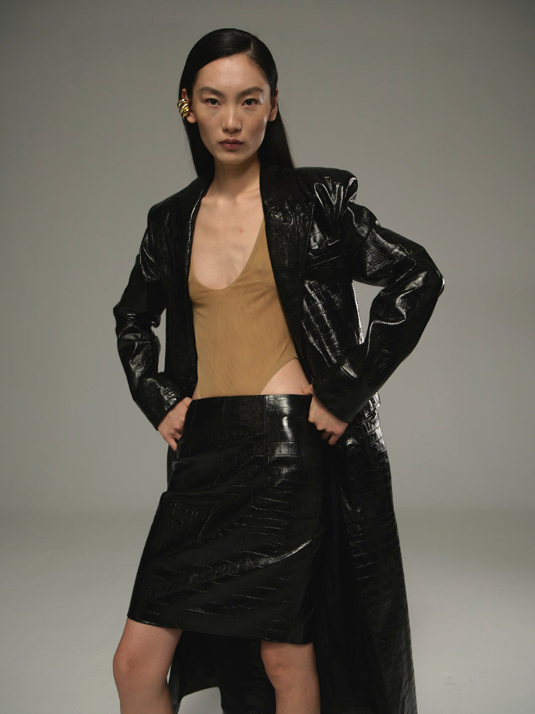 Pearl Croco Pattern Leather Tailored Jacket with Shearling Collar