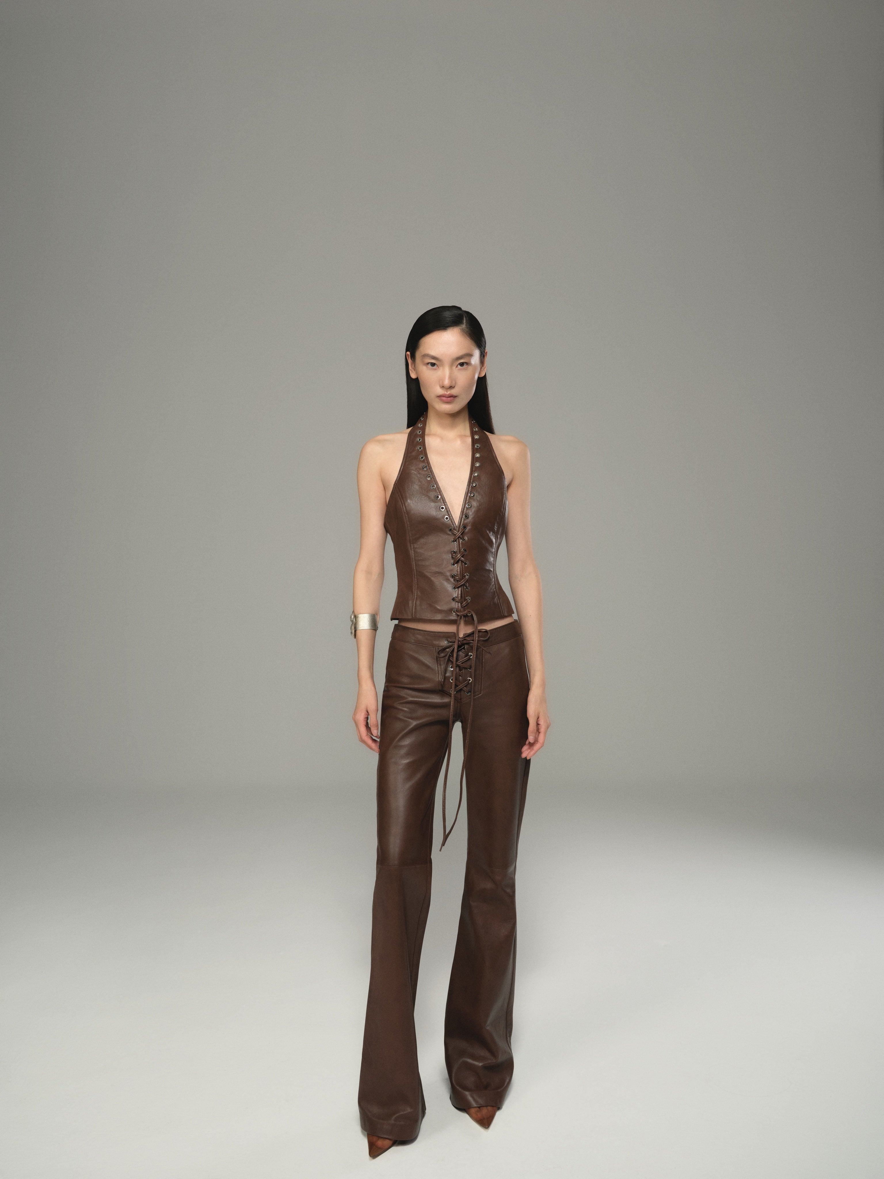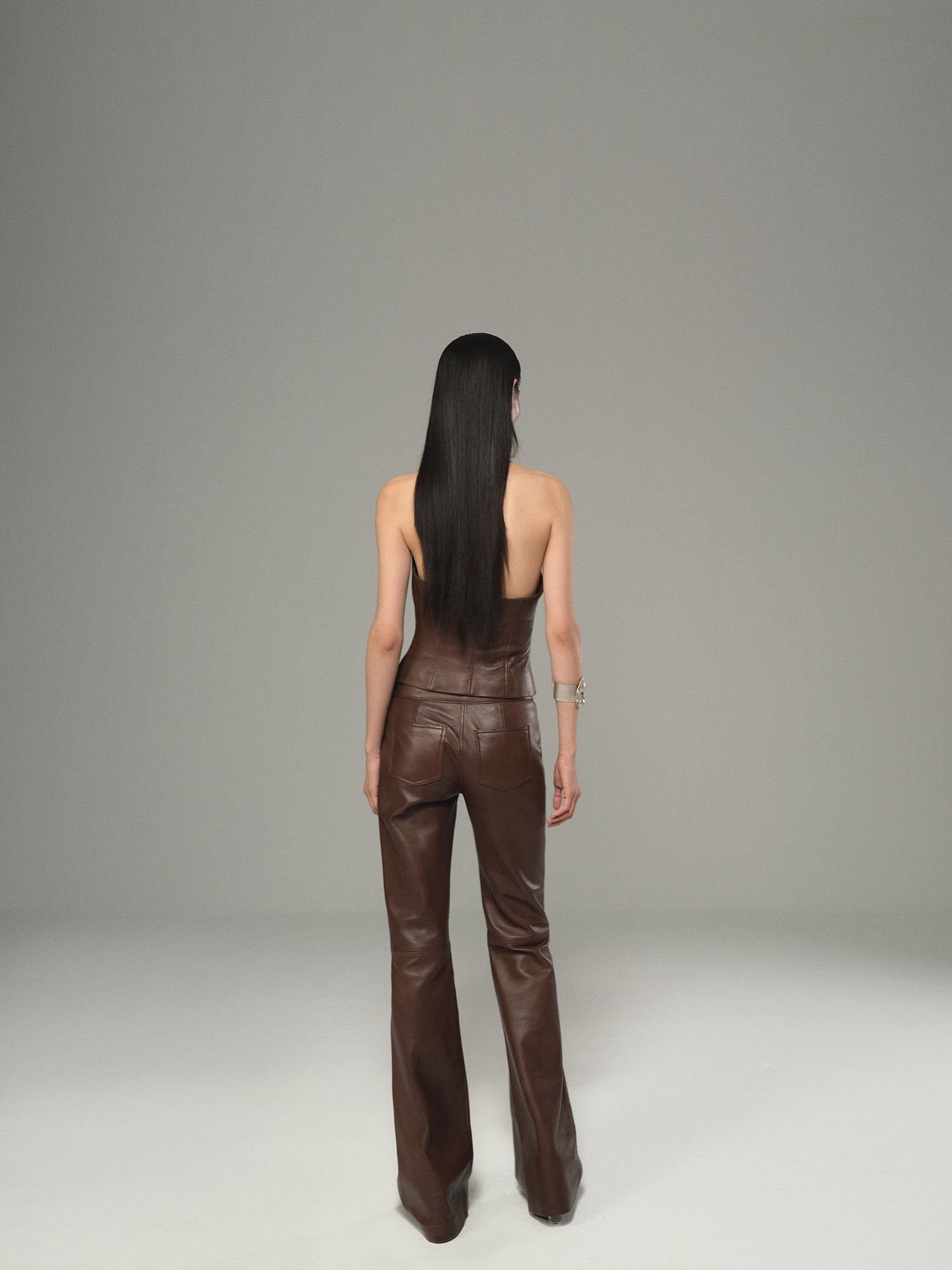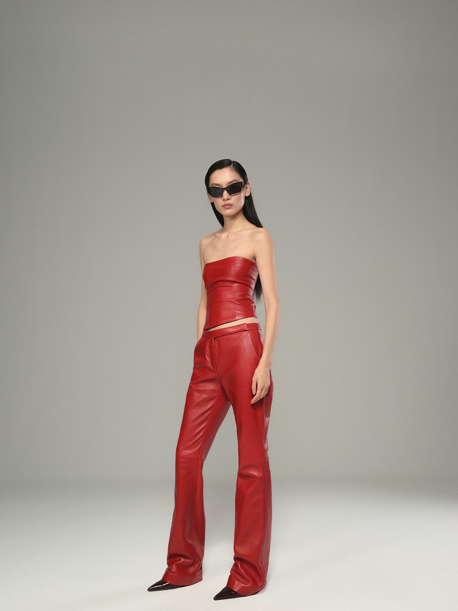 Pearl Croco Pattern Leather Tailored Jacket with Shearling Collar