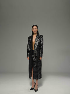 Jet Black Croco Leather Pencil Skirt