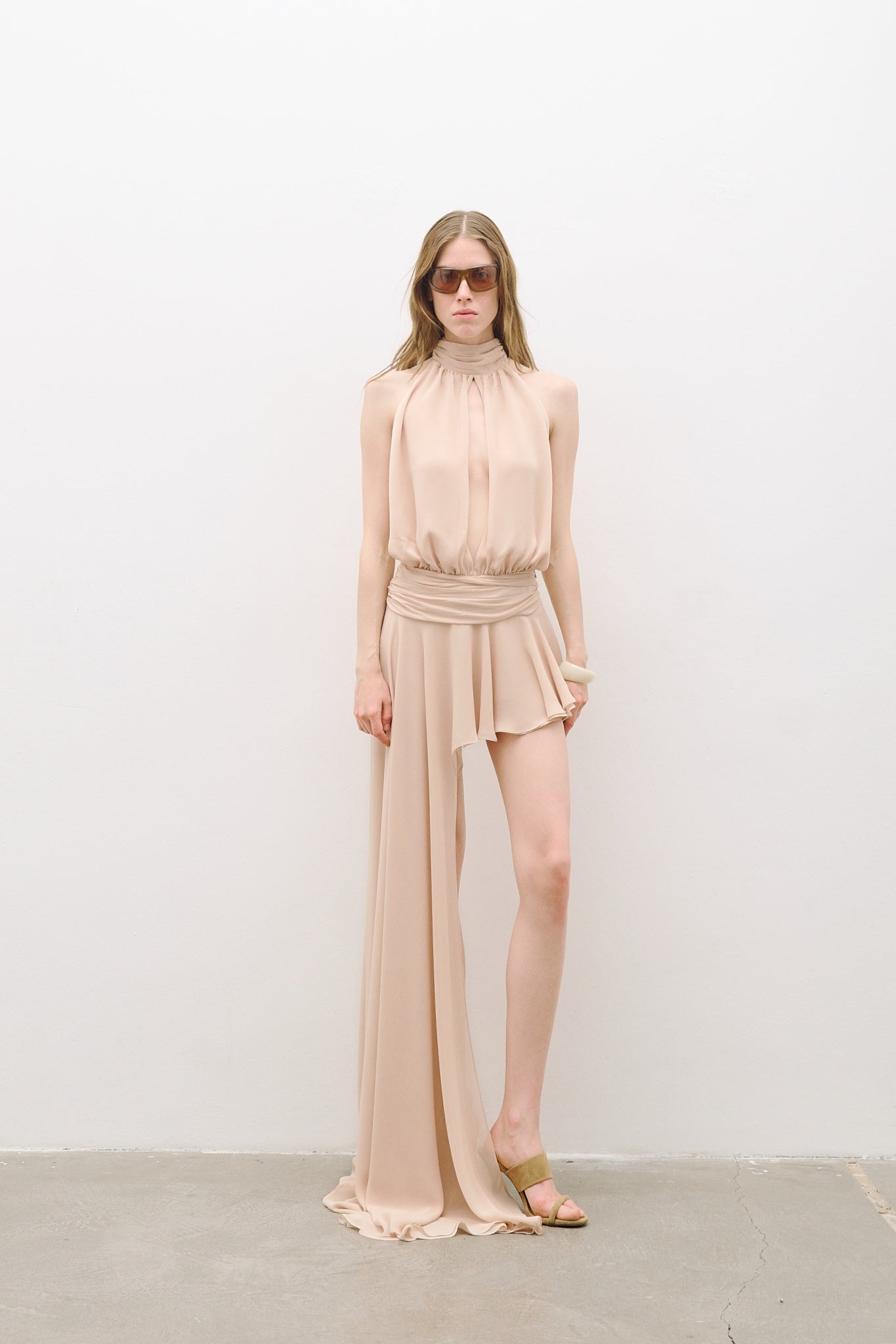 Asimetrik etek kesimli, balıkçı yaka elbise