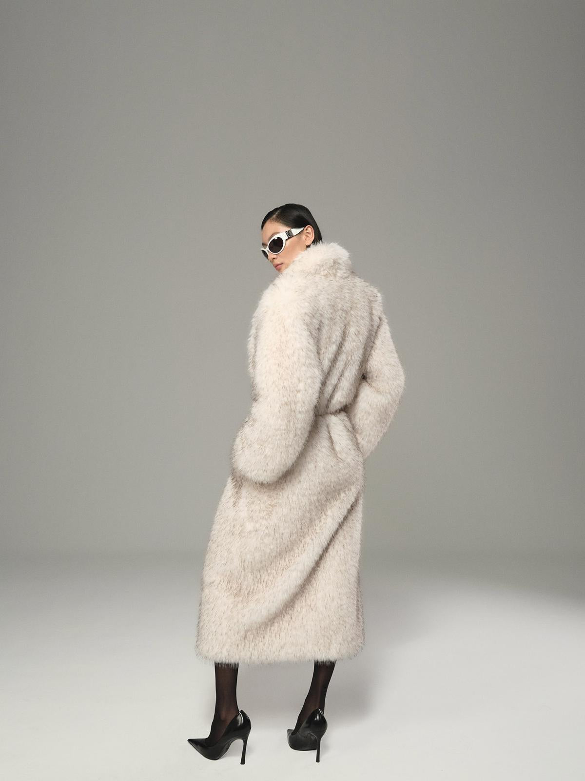 Ivory Melange Long Faux Fur